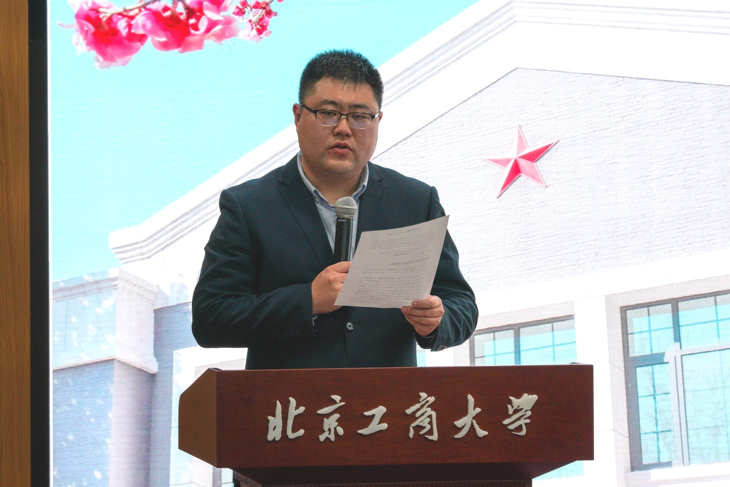 在研究生院李昀澄流暢自然的主持下,五名青年黨員聲情并茂地將書中的人物故事徐徐鋪展開來。人事處李昊哲誦讀了物理學家和教育家嚴濟慈79歲高齡時遞交的《入黨志愿書》。耄耋之年,壯心不已,這位成就斐然、德高望重的科學家用一生的探索,為自己找到了光榮的歸宿,其覺悟境界令人敬佩不已。學生處黨浩生動傳神地朗讀了一封家書《毛岸英致表舅》,信中毛岸英斷然拒絕了舅父想要在長沙謀取官職的不正當要求,烘托出毛岸英一心為公的人民立場和坦蕩無私的革命者形象。國際交流與合作處劉倩穎將美國著名作家和新聞記者埃德加?斯諾支持幫助中國的深厚情誼娓娓道來,從特定視角感受黨的百年艱辛和百年輝煌,同時學習如何向世界講好中國共產黨的故事。學校辦公室劉禹孜深情地講述了無產階級革命家、教育家、新中國高等教育的開拓者吳玉章先生的感人事跡,“創業難,守業更難,須知物力維艱,事事莫爭虛體面;居家易,治家不易,欲自我身作則,行行當立好規模”,將吳玉章先生的良好家風體現得淋漓盡致。黨風政風連著社風民風,作風建設只有進行時,沒有完成時,黨委宣傳部吳慧中深沉有力地朗讀了評論文章《八項規定改變中國》,昭示了解決大黨獨有難題的清醒和堅定,即始終保持自我革命的斗爭精神,不斷書寫“百年恰是風華正茂”的傳奇。