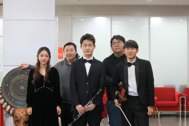 金獎作品《莫扎特為中提琴、單簧管和鋼琴而作的三重奏,KV498》榮登北京大學生音樂節優秀節目市級現場展演,在管樂團劉兆老師的悉心指導下,張欣彤、李天澤、劉昀罡三位演奏者精心準備、積極備賽。現場演奏中,由鋼琴、中提琴和單簧管默契配合,鋼琴的靈動旋律營造出優雅寧靜的氛圍,中提琴的醇厚音色融入其中,構建出美妙動人的音樂情境,而單簧管的悠揚旋律則靈動多變,為整首樂曲增添了無限魅力,生動展現了我校大學生藝術團的青春風采,贏得了現場觀眾的熱烈掌聲。