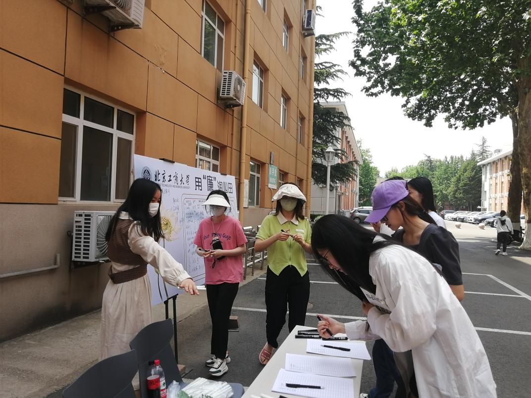 為營造良好的校園廉潔文化,商學院研究生會于5月14日11:00-13:00在阜成路西校區食堂門口舉辦“清風扶正氣 廉潔伴我行”廉潔承諾簽名活動。此次活動是商學院開展學生廉潔主題教育系列活動之一,共吸引了來自商學院、國際經管學院、輕工科學技術學院、生態環境學院等7個學院、180余名同學積極參與。