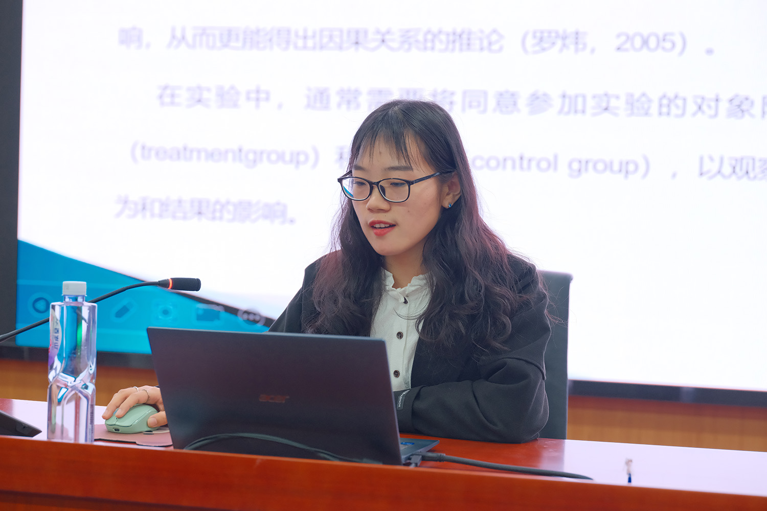 第二講的主題是數據收集、處理與Stata的實現,盧強以自身豐富的實證科研經驗,從宏觀、中觀和微觀的視角展開,由淺到深,把復雜的理論知識和理論與變量的關系、實證研究的一般過程、處理和分析的數據的類型等生動地講給在座的同學。盧強還仔細對比分析了過去和現在數據使用的區別,并說明了不同的數據來源的優缺點,帶領同學們在數據來源和分析中深入思考。在數據處理與Stata實現的具體操作上,盧強的博士生王鑫怡為同學們講解了具體的操作流程,并以案例的形式有條理的進行展示,將如何使用stata處理二手數據的流程清晰地呈現在同學們面前,具有非常強的實用性,現場的同學紛紛在自己的電腦上練習操作。