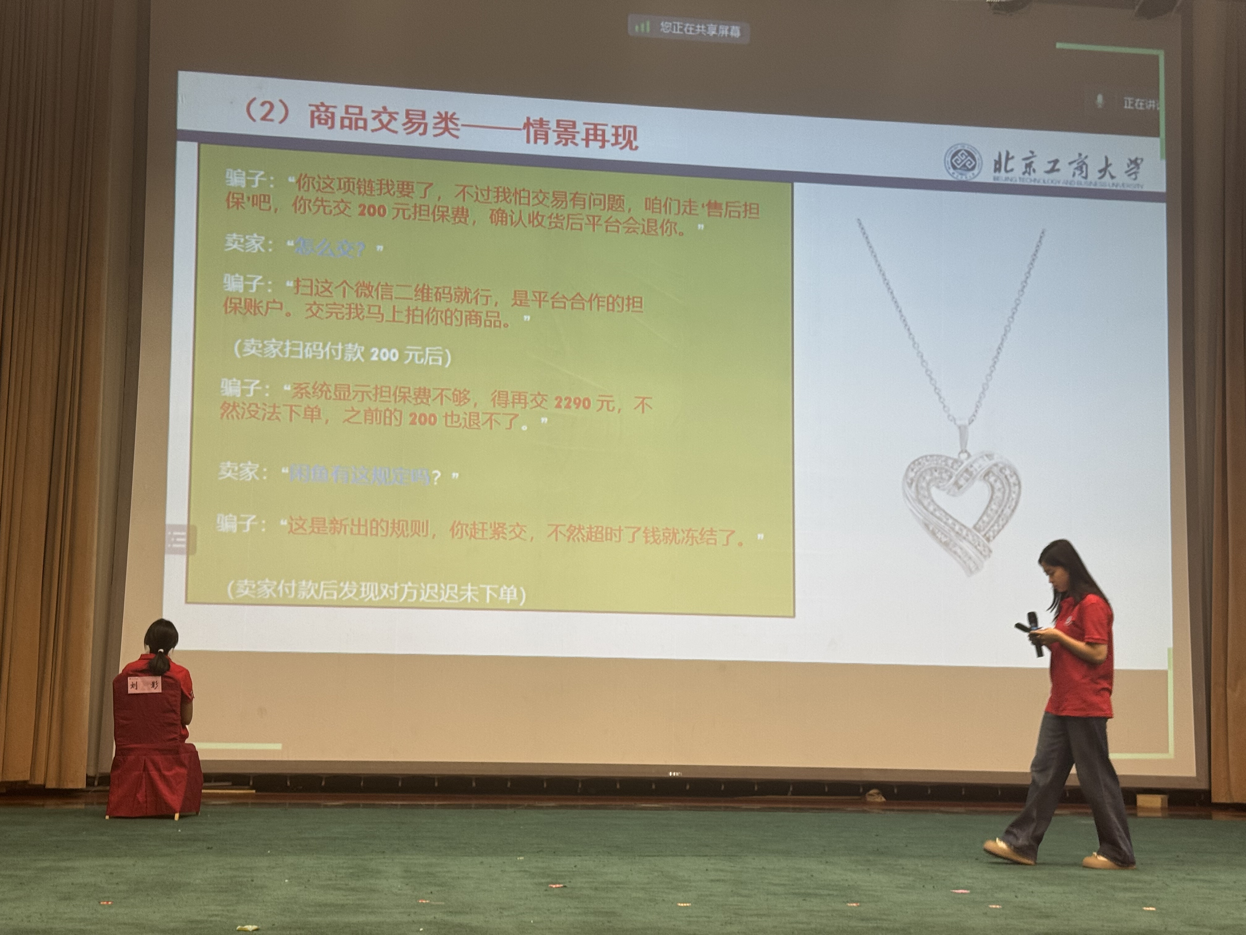 在本、研新生反詐安全教育講座過程中,6名宣講組成員分工合作,分別從電信網絡詐騙概述、高校常見電信網絡詐騙類型、我校防范電信詐騙工作開展情況、防范電信網絡詐騙應對策略四個方面進行宣講。在講解高校常見電信網絡詐騙類型環(huán)節(jié),每個案例均通過視頻和現場模擬表演短劇的形式來呈現,讓聽課學生在形象生動地短劇中“沉浸式”了解詐騙的詳細過程,為日后可能遇到的詐騙場景留下深刻印象,減少上當受騙的幾率。宣傳大使還特別有針對性地介紹了我校近三年真實發(fā)生的電詐大數據,從電詐高發(fā)類別、高發(fā)時段、高發(fā)學院、高發(fā)群體、關鍵特征等方面進行分析,讓新生既能直觀感受到電詐風險就在身邊,又清楚知道該從哪些方面進行重點防范。這種針對性強、寓教于樂的“朋輩教育”電詐教育宣傳形式,較比傳統的宣教模式在教育效果上有了很大的提升,是在高校反詐教育路徑上的積極創(chuàng)新探索,得到了上級公安部門的高度肯定。