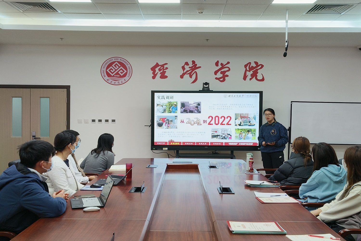 經濟學院國貿本科生黨支部書記焦錦馨就“青廉筑夢”鄉村振興實踐團在五間房村開展的主題實踐活動進行專題匯報。實踐團的同學們以五間房村為切入口,進行實地調研,探討問題所在,攻堅克難。同學們結合自身學科特點,與村民共同商議認為五間房村可以走“以梨富村,以情強村,鄉村振興”的發展道路。焦錦馨同志在匯報中分享了許多活動圖片,比如與小學生共同繪制心目中的五間房村,為村里老人拍一張照片等,近距離的與村民們接觸,感受鄉村的美麗風土人情。