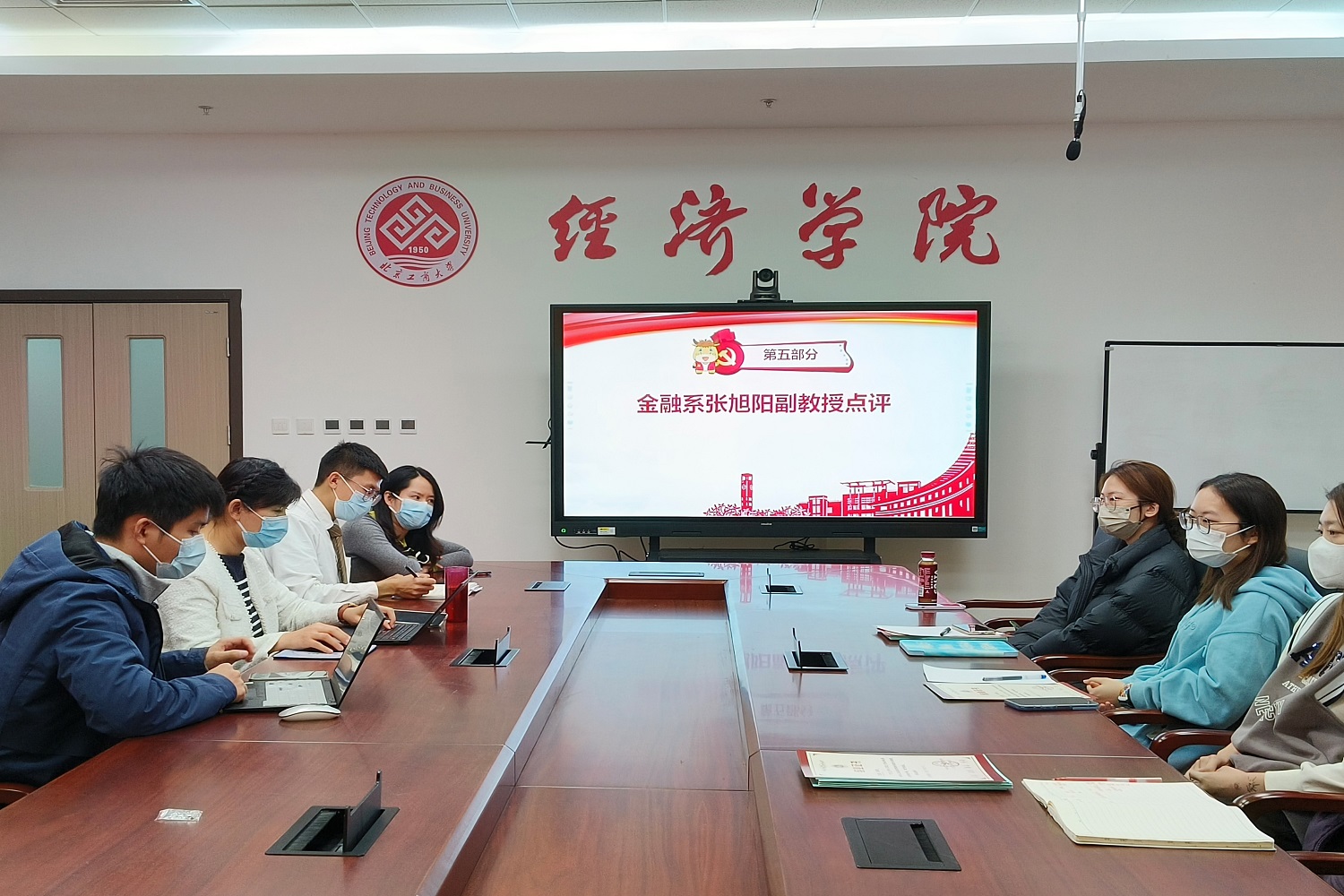 點評環節,金融系副教授張旭陽對三位黨支部書記的匯報作出肯定的評價,隨后向在座的黨支部書記提出寶貴意見。張旭陽指出,匯報內容要改進脈絡串聯,邏輯清晰,內容完整,可以從經濟學學科角度出發,結合黨的二十大精神,將匯報整體更好的呈現出來。另外,在開展實踐活動時也要結合學科特色,發揚實踐團隊的專業優點,在鄉村振興中開展具有專業特色的實踐活動。