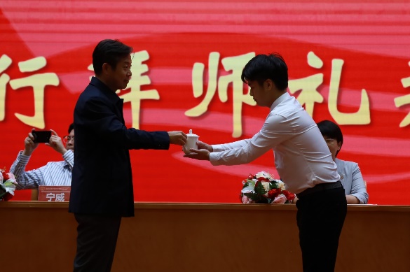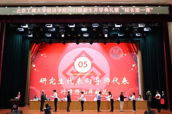 “禮”是中國傳統(tǒng)文化的核心,我國素有“禮儀之邦”之稱,講究尊師重道,注重拜師禮儀。在本次開學(xué)典禮的拜師儀式中,研究生代表依次向鯤鵬榮譽(yù)導(dǎo)師行敬茶禮、插手禮和獻(xiàn)花禮,表達(dá)最誠摯的敬意與感謝。師徒共進(jìn)、薪火相傳,嚴(yán)肅而莊重的拜師儀式是經(jīng)濟(jì)學(xué)院尊師重道的生動體現(xiàn)。