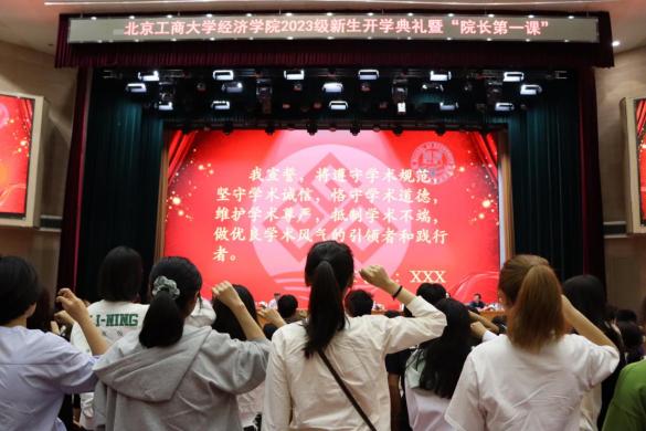 人生新序章,始于初秋;經(jīng)心向遠(yuǎn)方,奔赴山海。9月27日下午,經(jīng)濟(jì)學(xué)院2023級新生開學(xué)典禮暨“院長第一課”在良鄉(xiāng)主校區(qū)A報告廳舉行。學(xué)院全體領(lǐng)導(dǎo)班子成員、各系教授代表、系主任、2023級本科生班主任、輔導(dǎo)員,以及全體2023級本科生和研究生共計750余人參加本次大會。會議由學(xué)院黨委副書記李艷春主持。