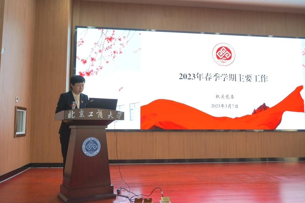 述職評議結束后,機關黨委書記鄭喜姣布置了春季學期黨建主要工作,著重對學校開展2023年廉潔教育系列活動和迎接北京高校黨建思政基本標準入校檢查等事項進行了說明。她強調,機關各部門要以學習貫徹黨的二十大精神為主線,堅定不移全面從嚴治黨,不斷增強黨組織的政治功能和組織功能,同時要在“創建模范機關”上持續用力,以“講政治、守紀律、負責任、有效率”為目標,爭創政治機關、高效機關、清廉機關、活力機關。