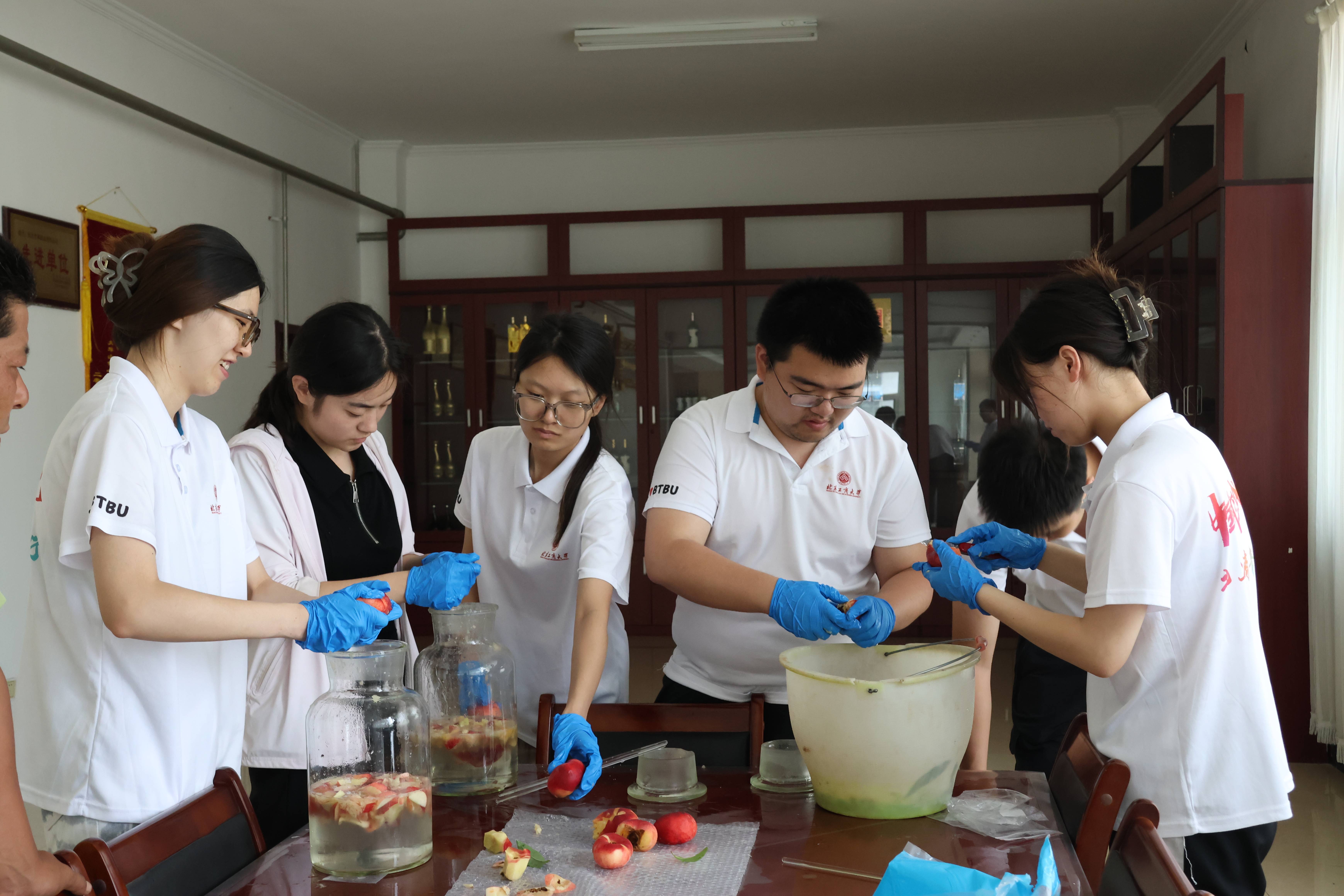 食品與健康學院暑期社會實踐團,深入平谷區大華山鎮,策劃大華山鎮大桃品牌傳播推廣活動,提升大桃品牌文化內涵。實踐團把課堂學習和鄉村實踐緊密結合起來,充分發揮當地的資源優勢,圍繞平谷區特色大桃開啟了桃酒釀造制作實驗,把“實驗室”建在桃林田間,創新桃酒釀造技藝,親手釀造、反復實驗,旨在提升平谷大桃的附加值,打造具有地方特色品牌,探索一條創新的產業發展道路,帶動當地經濟發展。近日,食品與健康學院《裕釀新途,同心共建--科技賦能助力鄉村產業融合》項目入選首都高校師生服務鄉村振興行動計劃。