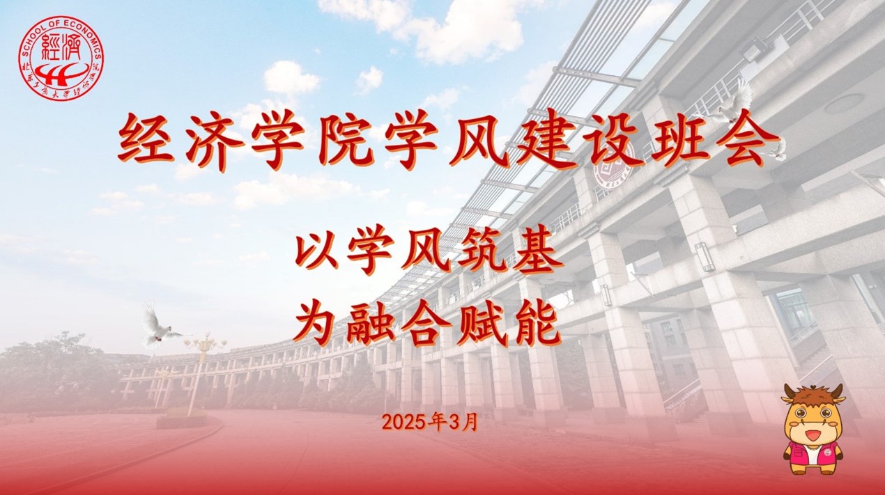 2025年春季學期開學第一月,經濟學院以強化班風學風建設為抓手,緊扣“工商一體化”發展理念,圍繞“深融合、強供給、高質量、優實績”工作思路,系統推進49個本科生班級開展“以學風筑基,為融合賦能”學風建設主題班會。通過專題研討、學業剖析、需求導向、榜樣引領等四個模塊,構建“研—析—導—引”班會模式,激發學生內生動力,培養兼具專業素養與家國情懷的創新復合型人才,為“雙一流”學科創建與高水平研究型大學建設目標注入動能。