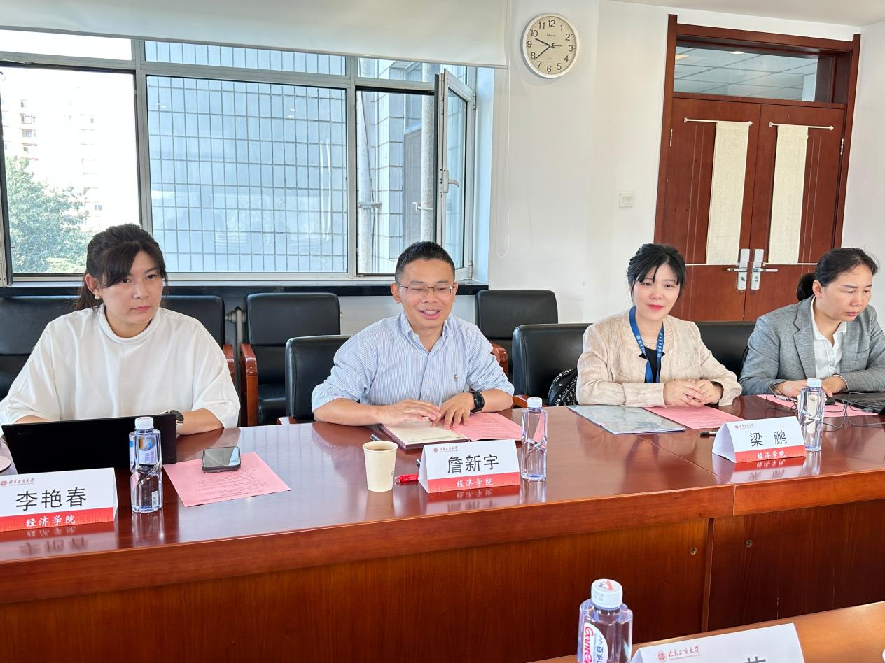 詹新宇首先對付莉書記一行的到訪表示熱烈歡迎,并詳細介紹了北京工商大學經濟學院在人才培養、師資隊伍建設、學科建設等方面的最新進展與心得體會。詹院長表示,兩校同為市屬高校,一直建立有深厚的友誼;雙邊經濟學院學科布局相似、發展任務相近,前期各層面的交流互動也比較頻繁,期待通過此次交流進一步加強合作。