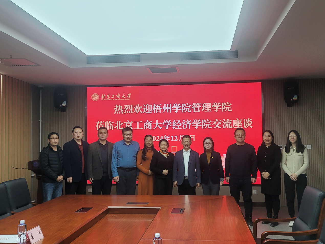 12月4日晚,梧州學院管理學院張堂云院長帶領副院長趙虹、工商管理教研室主任李守亳、樂小兵教授、王學良副教授、姜河博士一行六人來經濟學院進行調研交流。經濟學院執行院長詹新宇、副院長牛曉燕、院長助理崔怡、經濟系主任陳真玲以及辦公室主任鄧浩參加此次交流會議。會議由詹新宇主持。