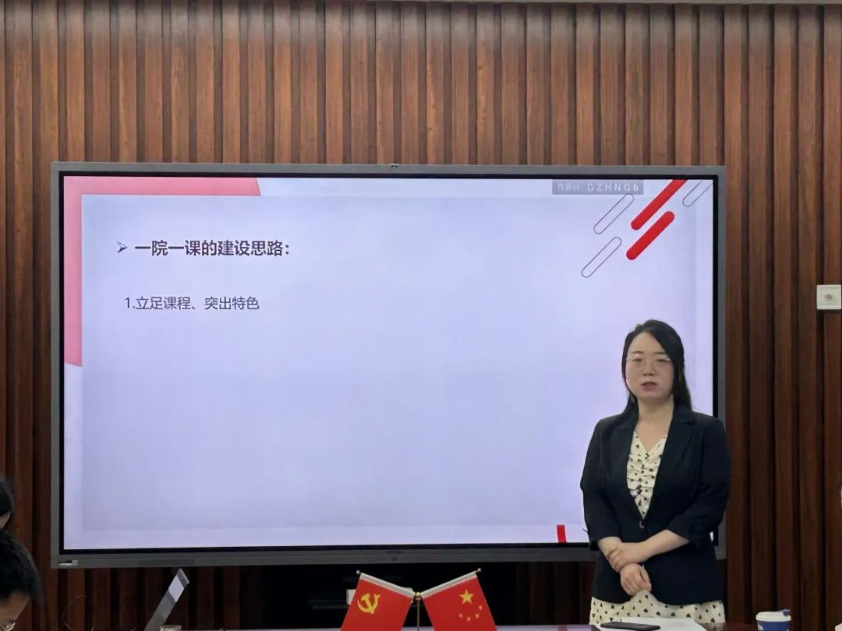 陳美靈分享了“一院一課”的建設(shè)思路,一是立足課程、突出特色;二是結(jié)合學(xué)校、學(xué)院情況;三是進(jìn)行案例、內(nèi)容建設(shè)。同時(shí)介紹了準(zhǔn)備情況,包括教研室排課保障、教師端實(shí)踐探索以及集體備課、科研反哺等方面。在具體內(nèi)容上,以毛澤東思想的歷史地位為例,從知名企業(yè)家案例引出“為什么毛澤東思想不能丟?”“毛澤東思想的魅力何在?”“如何科學(xué)評(píng)價(jià)毛澤東思想?”“如何評(píng)價(jià)歷史人物?”等問題,引發(fā)同學(xué)結(jié)合專業(yè)特色深入探討。