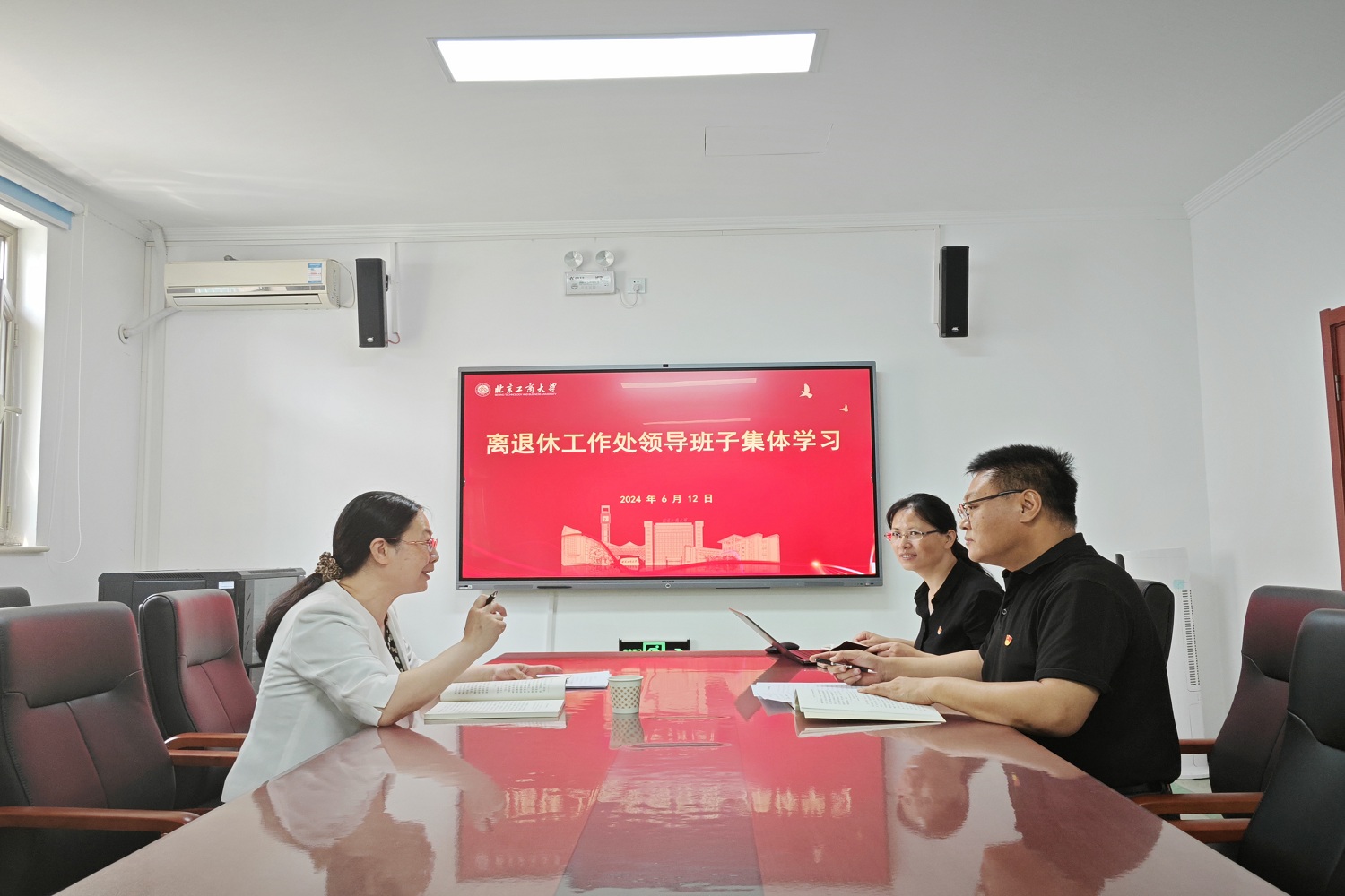 6月14日,離退休黨委理論學習中心組(擴大)專題學習研討會在阜成路西區老干部活動中心召開。旨在深入學習領會文件精神,強化黨紀學習教育,筑牢黨的紀律防線。離退休黨委理論學習中心組成員、離退休工作處處長樊江濤、離退休工作處副處長夏本翠、各離退休黨支部書記參會,會議由離退休黨委書記王紅英主持。