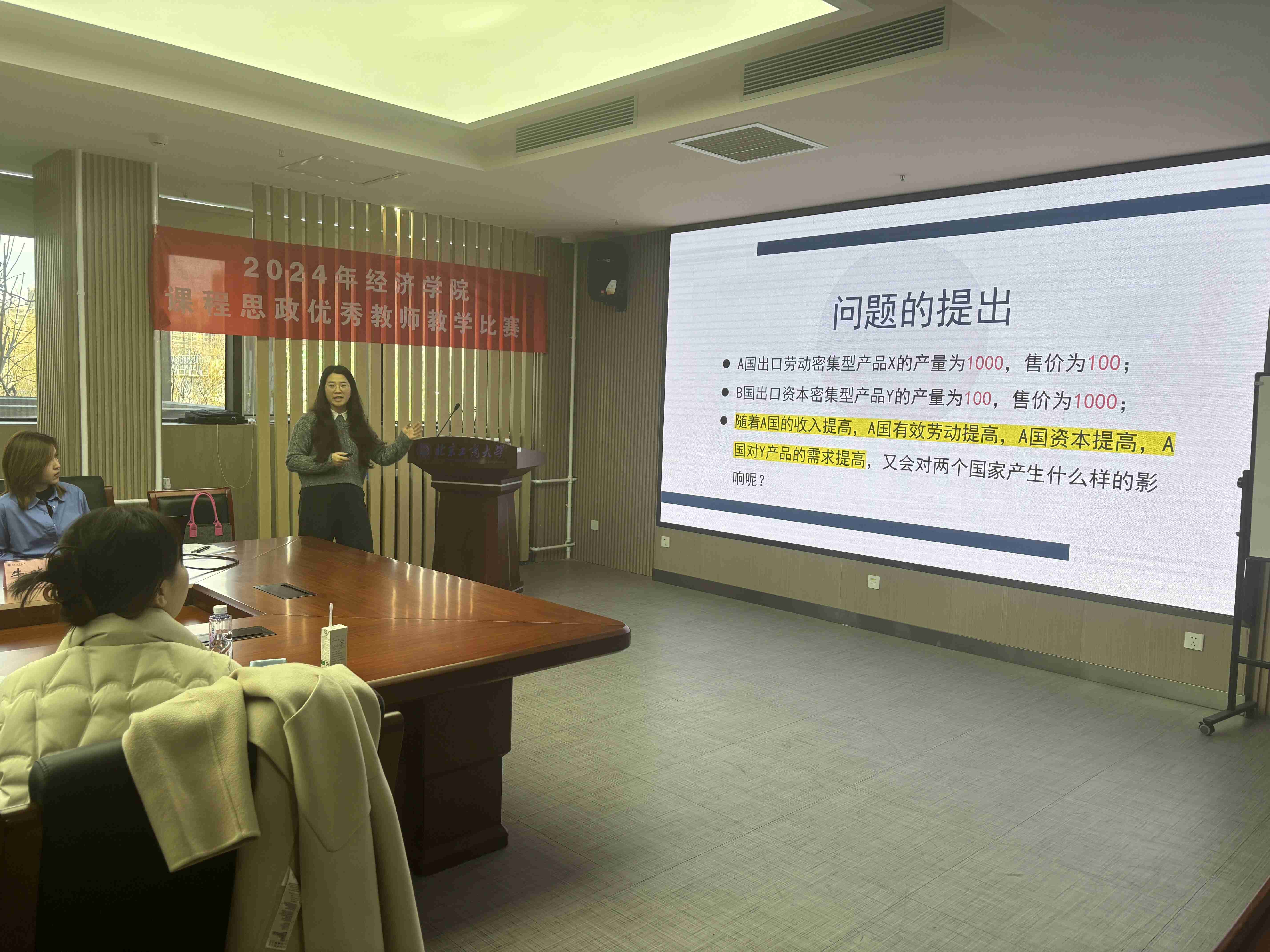 為落實立德樹人根本任務,推進學院課程思政建設,挖掘專業課程德育內涵,實現知識傳授與價值引領的有機統一。經濟學院積極響應學校號召,于12月4日上午,在良鄉校區舉辦“2024年經濟學院課程思政優秀教師教學比賽”。經濟學院黨委書記呂良、執行院長詹新宇、學校教務處副處長熊科出席比賽。副院長牛曉燕、金融系主任李飛、貿易經濟系專業主任李麗、風險管理與保險學系楊建海、國際經濟與貿易系副主任左思明擔任比賽評委。比賽由經濟學院劉倩穎主持。