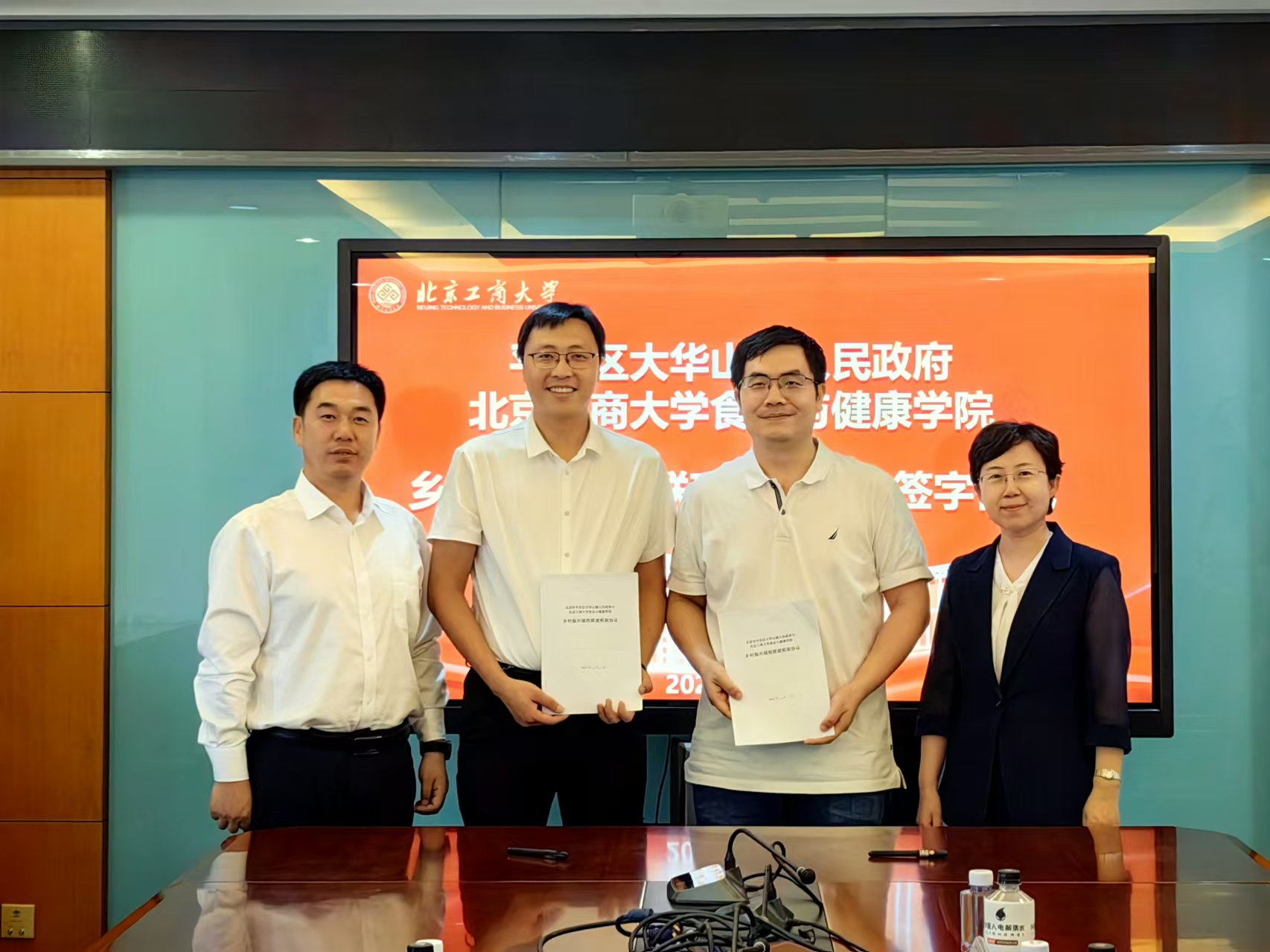 為深入學(xué)習(xí)貫徹習(xí)近平總書記重要講話精神,全面推進(jìn)鄉(xiāng)村振興戰(zhàn)略實(shí)施,9月13日,北京工商大學(xué)食品與健康學(xué)院、平谷區(qū)大華山鎮(zhèn)聯(lián)合簽訂鎮(zhèn)校聯(lián)建框架協(xié)議。大華山鎮(zhèn)鎮(zhèn)黨委書記王斌、組織部部長(zhǎng)張建、小裕子村書記閆洪,學(xué)院黨委書記鄭喜姣、副院長(zhǎng)李健、組織員李娜、團(tuán)委書記朱晨晨共同出席簽約儀式暨座談會(huì)。