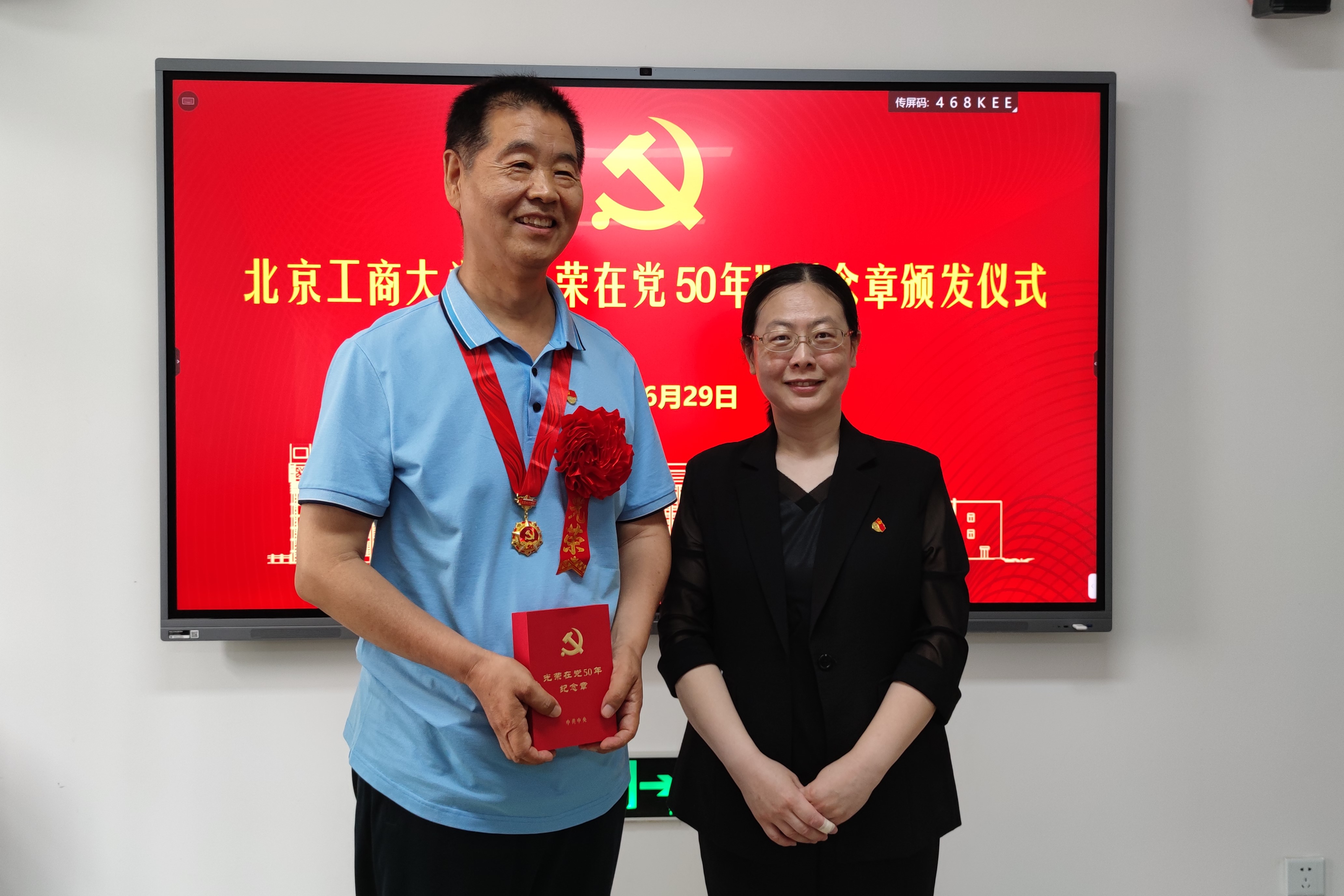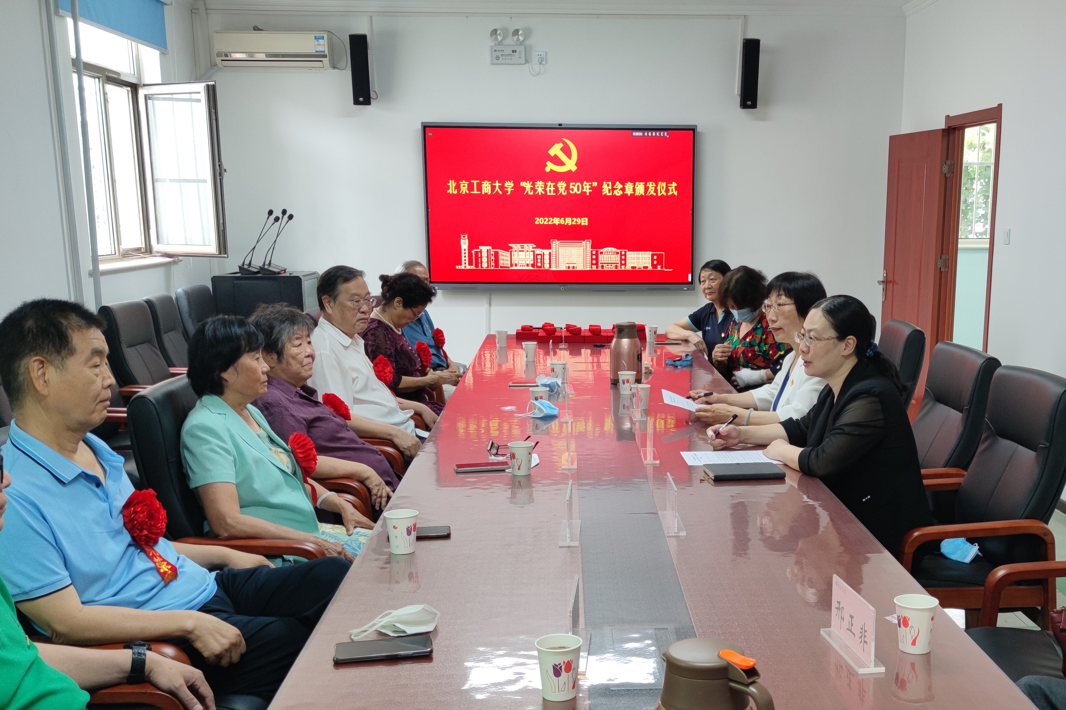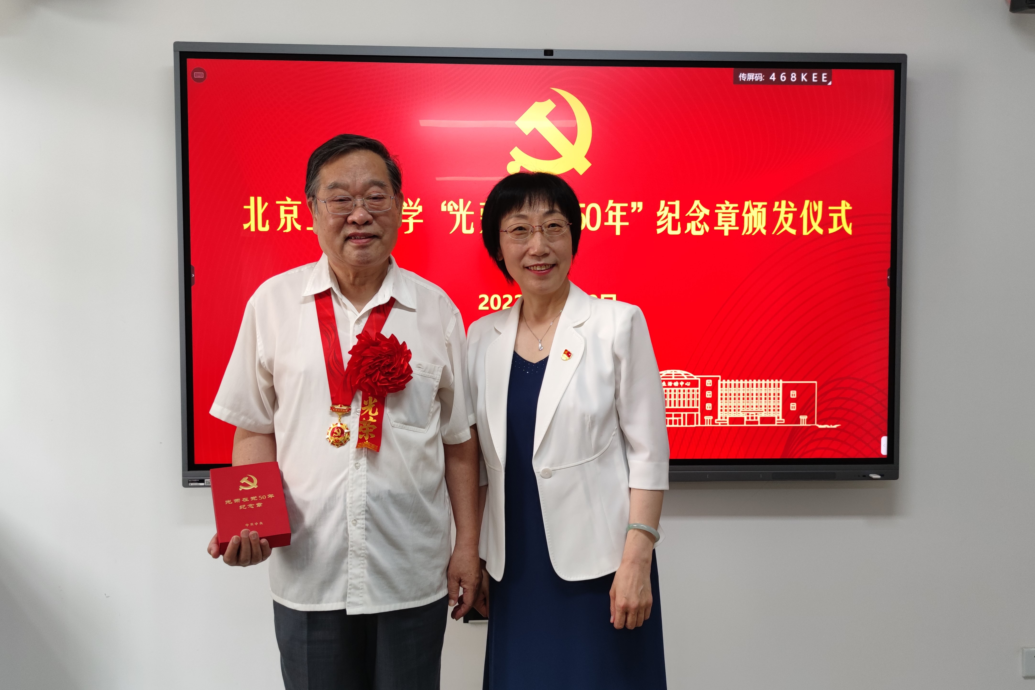 6月29日,學(xué)校“光榮在黨50年”紀(jì)念章頒發(fā)儀式在阜成路校區(qū)西區(qū)老干部活動(dòng)中心舉行。今年是中國(guó)共產(chǎn)黨成立101周年,學(xué)校有11名黨齡達(dá)到50周年的老黨員榮獲“光榮在黨50年”紀(jì)念章。“光榮在黨50年”的老黨員代表,離退休黨委書記楊巧明、離退休工作處處長(zhǎng)王紅英、副處長(zhǎng)褚財(cái)寬,離退休黨支部書記代表等參加了儀式。儀式由離退休工作處處長(zhǎng)王紅英主持。