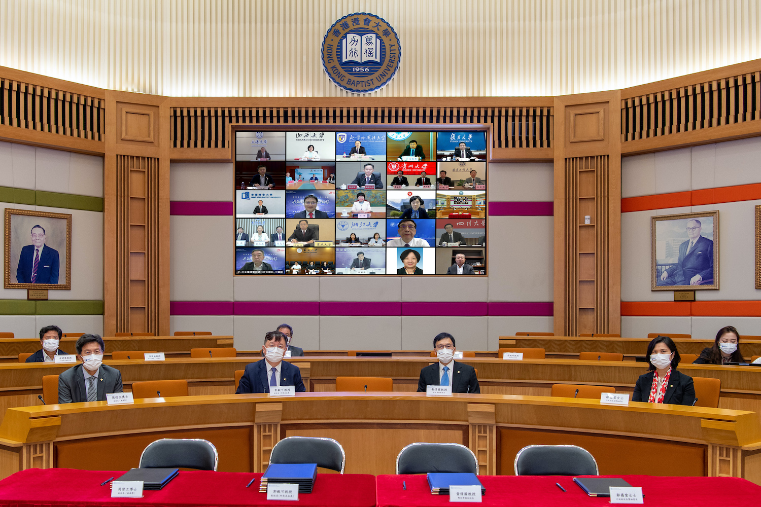在香港回歸祖國25周年之際,6月30日下午,應香港浸會大學邀請,我校代表團參加了香港浸會大學 “共融共贏 再啟新程”校長論壇暨“香港浸會大學與內地一流高校合作簽約儀式”。來自復旦大學、浙江大學、中國傳媒大學、北京外國語大學、上海交通大學、上海大學、四川大學、中南大學等18所內地一流高校的校領導參加了此次活動。我校黨委副書記、校長孫寶國,黨委常委、副校長劉敏華出席此次活動。孫寶國應邀在校長論壇發言并與香港浸會大學共同簽署雙方學術交流合作備忘錄。