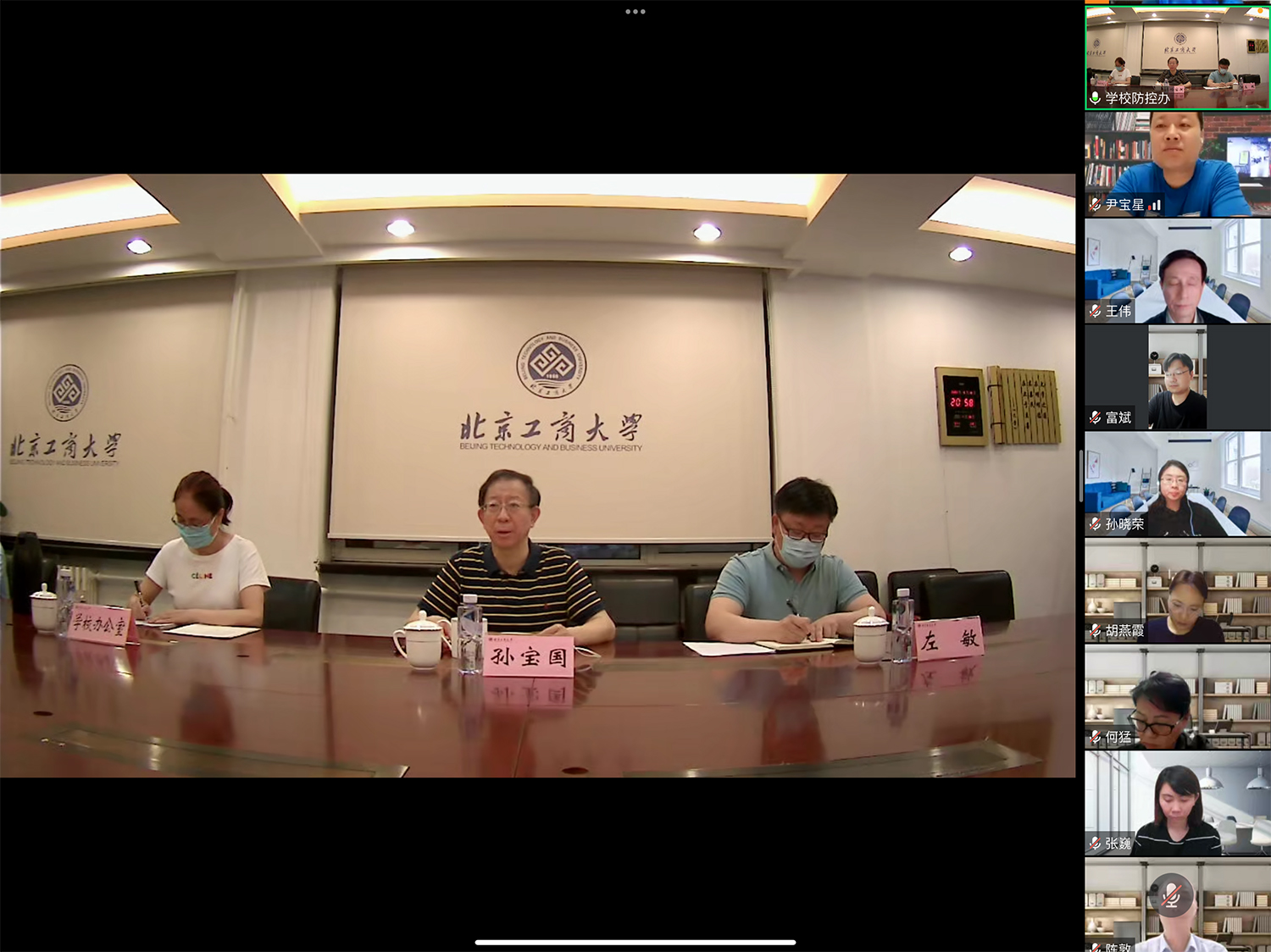 黨委副書記、校長孫寶國在講話中指出,一是要進一步統一思想、統一行動,從嚴從緊、嚴防死守,全力做好校園防控各項工作。在疫情防控關鍵時期、緊要關頭,全體師生必須緊張起來、動員起來、行動起來,堅持兩校區封閉管理不動搖。要做好疫情防控期間師生思想引導與心理疏導,各單位要做好本單位師生思想工作,將師生思想認識統一到北京市、教育系統疫情防控要求上來,關注師生思想動態,做好人文關懷。要高度重視疫情防控工作,把疫情防控作為當前壓倒一切的任務,堅決打贏這場阻擊戰,同時教育師生要做好個人防護工作,為疫情防控作出自身應有的貢獻。二是在做好疫情防控的同時,統籌做好教育教學各項重點工作。堅持線上教學不間斷,扎實有序做好畢業就業、博士生招生、人才招聘等工作,按照“過程要嚴、結果要好”的要求,如期完成各項工作任務目標,確保校園安全不破防,把疫情對學校各項工作的影響降到最低。孫寶國強調,全體北工商師生在疫情面前始終保持清醒頭腦,顧大局、識大體,展現出良好學習工作狀態和精神面貌,希望師生員工高度重視,繃緊疫情防控這根弦,不松懈、不大意,嚴之又嚴抓好疫情防控措施落實,持續鞏固疫情防控成果。