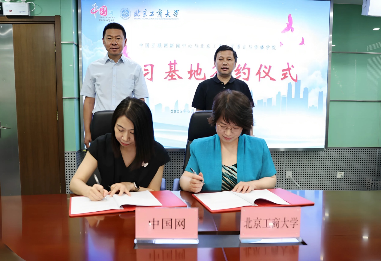 雙方就人才聯合培養、實習基地建設等具體合作事項展開了交流,探討合作模式與合作內容。北京工商大學語言與傳播學院院長王擎和黨委書記劉影,分別回顧了雙方在實習交流等方面的合作情況,并介紹了學院在人才培養、學科建設方面的特色與成果。中國互聯網新聞中心新聞評論部主任蔡曉娟、人力資源部主任王婧、中國發展門戶網副主任焦夢介紹了中國網在新聞報道、國際傳播業務領域的特色與成績,人才需求情況及北京工商大學畢業生在中國網的發展現狀。雙方約定將調動優勢資源,在專業人才培養、融媒體技術培訓和新聞業務指導等方面探討建立合作平臺;實現教學、實踐、就業全過程深入戰略合作;開展融媒體技術實踐探索,探討產學研一體化運行模式,努力將合作成果轉化為推動新時代國際傳播人才培養、國際傳播實踐創新的新動能,共同譜寫產學研協同育人的新篇章。