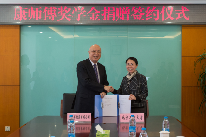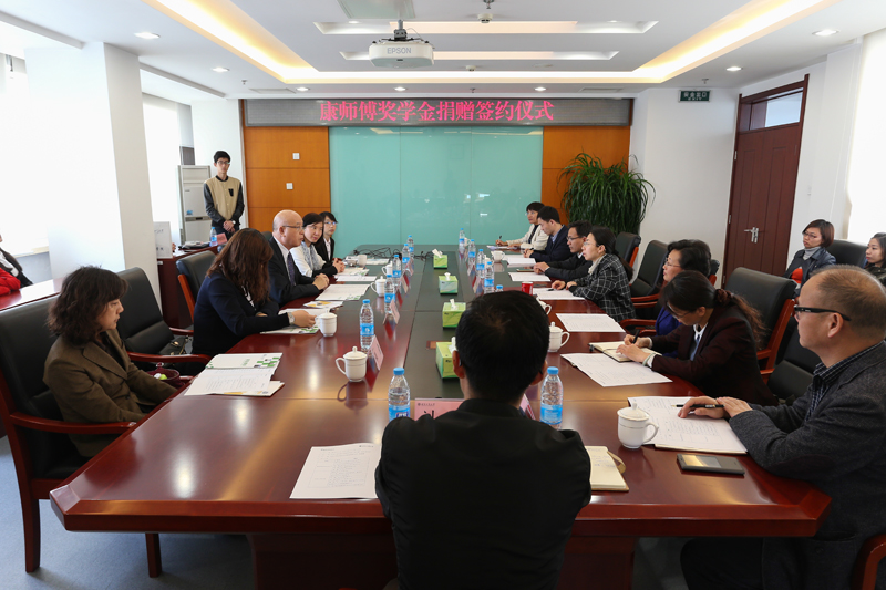 4月13日上午,康師傅獎學金捐贈簽約儀式在阜成路校區舉行。康師傅控股有限公司華北東兼北京地區董事長張百清、學校黨委副書記董竹娟出席捐贈儀式,康師傅控股有限公司中央研究所食安中心丁克芳、康飲事業北京人資部處長郭薇、地區董事長助理譚露、康師傅控股人資部專員錢隆參加活動。捐贈儀式由食品學院分黨委副書記胡燕霞主持。
