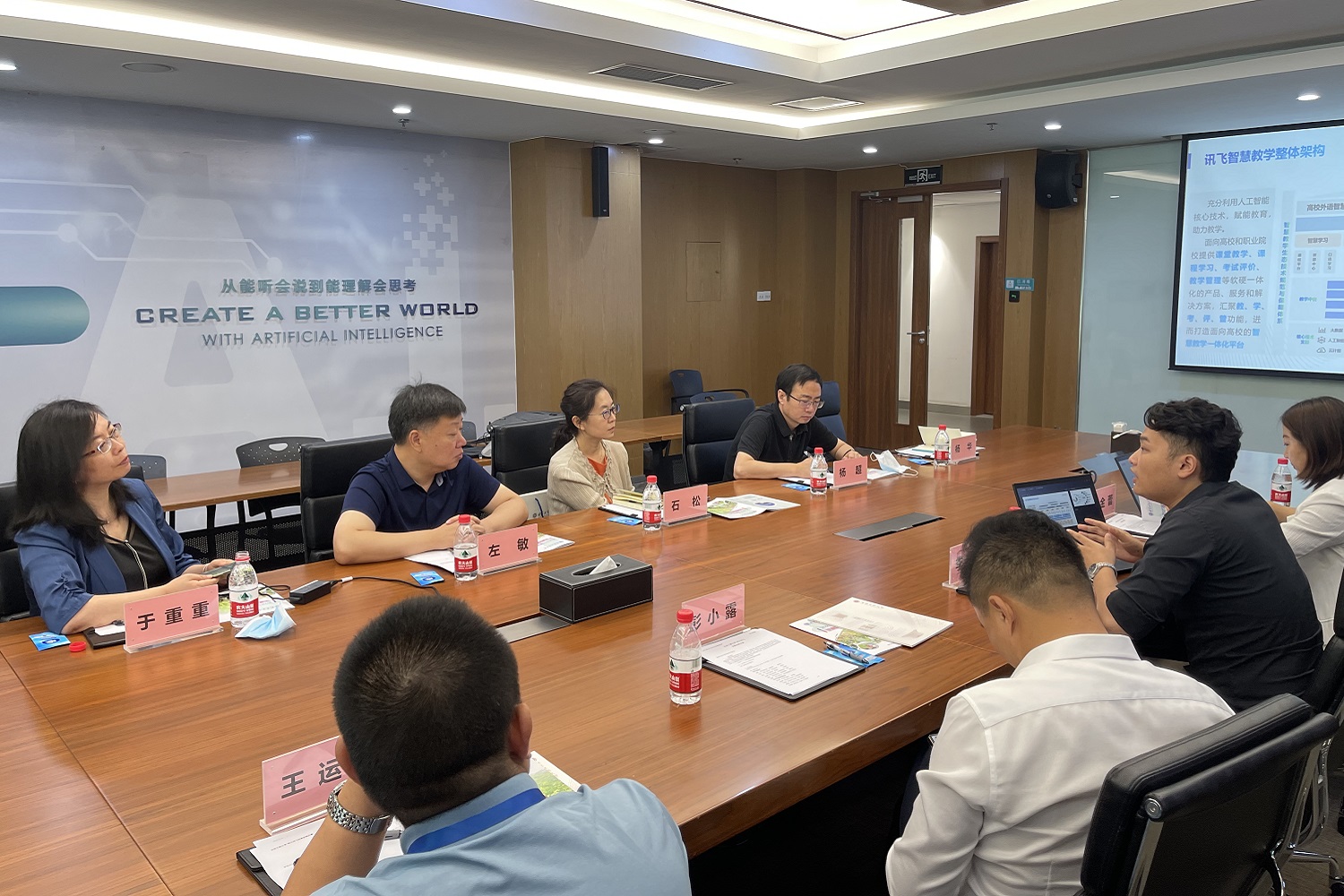 左敏感謝科大訊飛對本次交流活動的高度重視和周到安排。他介紹了北京工商大學的辦學歷史、辦學水平及面臨的發展機遇等方面的情況。他談到科大訊飛和北京工商大學在智慧教室建設、在線考試和網上閱卷方面已有良好的合作基礎,未來可以在人工智能賦能高校智慧校園、學校商科數字化轉型、實習實訓等方面繼續深化合作。