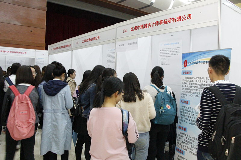 4月25日下午,由經濟學院、商學院聯合舉辦的學校2017年“經管財會類”專場雙選會在阜成路校區舉行。此次雙選會精選出的74家用人單位,共帶來230余個職位、1300余個崗位,其中包括百余個實習機會,最大限度地滿足學生們的就業和實習需求。中糧、FESCO、華潤集團、兵工財務等大型央企國企以及大量的外企、私企,吸引了眾多畢業生前來參加。