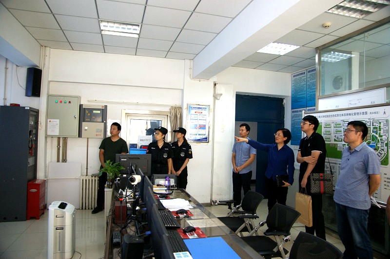 張?jiān)鸥毙iL(zhǎng)和相關(guān)單位負(fù)責(zé)人陪同督導(dǎo)組實(shí)地檢查了學(xué)校應(yīng)急指揮中心、耕耘樓實(shí)驗(yàn)室等部位。在學(xué)校應(yīng)急指揮中心,檢查組通過視頻監(jiān)控系統(tǒng)調(diào)閱查看了兩校區(qū)重點(diǎn)部位以及消防報(bào)警主機(jī)運(yùn)行情況;保衛(wèi)處介紹了學(xué)校擬測(cè)試中的人臉識(shí)別系統(tǒng)建設(shè)情況。隨后,督導(dǎo)組一行檢查了理學(xué)院實(shí)驗(yàn)室安全情況,理學(xué)院董銀卯教授為督導(dǎo)組介紹了實(shí)驗(yàn)室的基本情況,張?jiān)鸥毙iL(zhǎng)介紹了我校實(shí)驗(yàn)室?;钒踩芾淼挠嘘P(guān)工作。