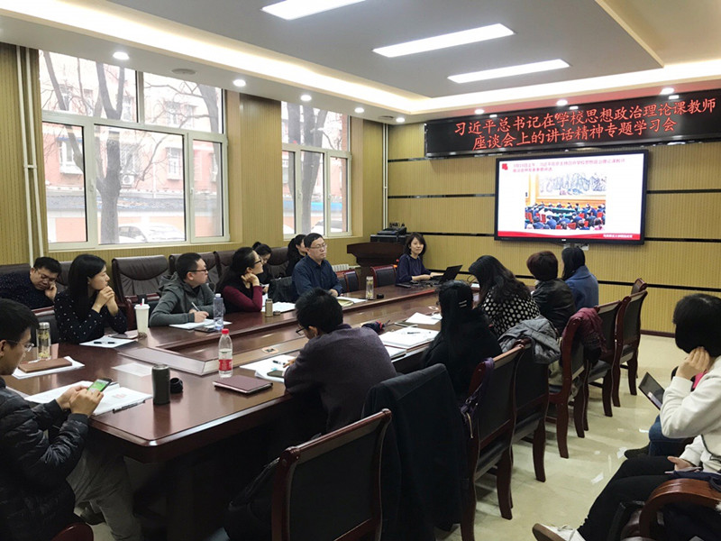 3月18日,中共中央總書記、國家主席、中央軍委主席習近平在京主持召開學校思想政治理論課教師座談會并發表重要講話。習近平總書記的重要講話在我校思政課教師中引起熱烈反響和強烈共鳴。為學習貫徹會議精神,領會習近平總書記重要講話的精神實質和深刻內涵,扎實推進思政課教師隊伍建設和課程改革創新,增強辦好思政課的思想自覺和行動自覺,3月20下午,馬克思主義學院在阜成路校區舉行習近平總書記在學校思想政治理論課教師座談會上的重要講話精神專題學習會。會議由馬克思主義學院副院長姚洪越主持。