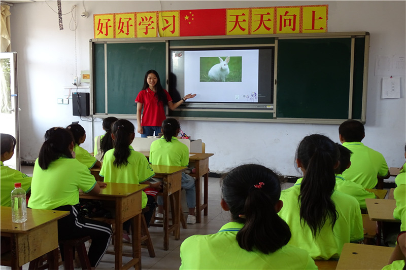 7月14日晚,剛剛結(jié)束資助宣講活動的大使們便兵分兩路,奔赴桃花中學(xué)和北董莊小學(xué)同時開展以“夢想點(diǎn)亮未來”為主題的夏令營活動。7月15日上午,兩所學(xué)校同時舉辦了開營儀式,32名初中生和44名小學(xué)生參加了活動,他們當(dāng)中大多數(shù)都是學(xué)校周邊村莊的留守兒童。3天的夏令營時間里,宣傳大使們各展身手,根據(jù)不同年級學(xué)生的差異,分別為孩子們進(jìn)行了手工、美術(shù)、合唱、數(shù)學(xué)、詩歌朗誦、科學(xué)普及、趣味英語、體育拓展等內(nèi)容的培訓(xùn)。多名大使還在授課間隙為學(xué)生講述自己的成長故事,引導(dǎo)他們打開心扉,堅(jiān)定自信,樹立遠(yuǎn)大目標(biāo)并為之奮斗。活動結(jié)束后,學(xué)生資助中心在桃花中學(xué)參加活動的學(xué)生中進(jìn)行了問卷調(diào)查,學(xué)生們對資助宣傳大使的滿意度為100%,97%的學(xué)生認(rèn)為夏令營極大提高了自己的視野和綜合能力。
