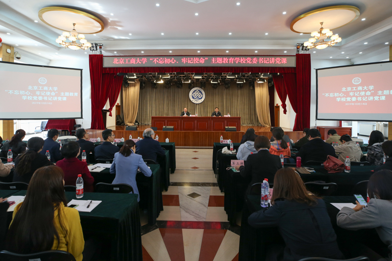 黃先開書記結(jié)合近期理論學(xué)習(xí)和到各單位調(diào)研的所思所悟,同與會(huì)人員分享了他對(duì)共產(chǎn)黨人初心的認(rèn)識(shí),并帶領(lǐng)大家重溫了近代以來中華民族的歷史進(jìn)程,闡述了我們肩負(fù)的歷史使命及現(xiàn)實(shí)要求。黃書記指出,要始終堅(jiān)守為中國(guó)人民謀幸福,為中華民族謀復(fù)興的初心和使命,踐行人民至上的價(jià)值理念,具體到學(xué)校工作,就是要堅(jiān)持以師生為中心的發(fā)展思想,以服務(wù)師生的實(shí)際成效踐行共產(chǎn)黨人的初心。要深刻認(rèn)識(shí)到實(shí)現(xiàn)中華民族偉大復(fù)興的目標(biāo),關(guān)鍵在于堅(jiān)持中國(guó)共產(chǎn)黨的領(lǐng)導(dǎo),堅(jiān)決維護(hù)黨中央的權(quán)威,全校上下要切實(shí)增強(qiáng)“四個(gè)意識(shí)”,堅(jiān)定“四個(gè)自信”,做到“兩個(gè)維護(hù)”,并全面落實(shí)到行動(dòng)上、時(shí)時(shí)處處體現(xiàn)在各項(xiàng)工作中。他還分享了新中國(guó)成立70周年慶典觀禮的感受,特別談到看到我校634名黨員師生參加的群眾游行33號(hào)“從嚴(yán)治黨”方陣走過天安門時(shí)的激動(dòng)心情,強(qiáng)調(diào)要努力弘揚(yáng)北工商人報(bào)效祖國(guó)、立德樹人的優(yōu)良傳統(tǒng)和使命在肩、勇于擔(dān)當(dāng)?shù)木衿焚|(zhì)。