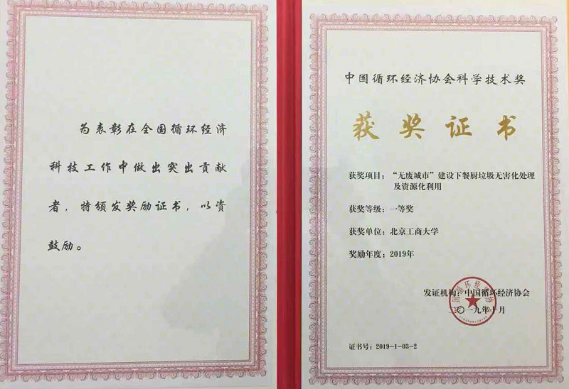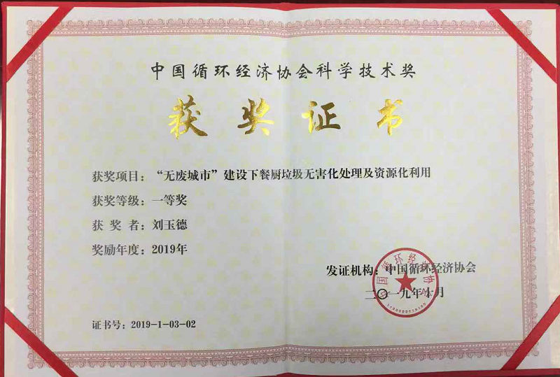 10月20日,中國循環(huán)經濟協(xié)會科技獎頒獎儀式在南京國際展覽中心召開,我校劉玉德教授團隊申報的《“無廢城市”建設下餐廚垃圾無害化處理及資源化利用》項目以第二完成單位榮獲一等獎。