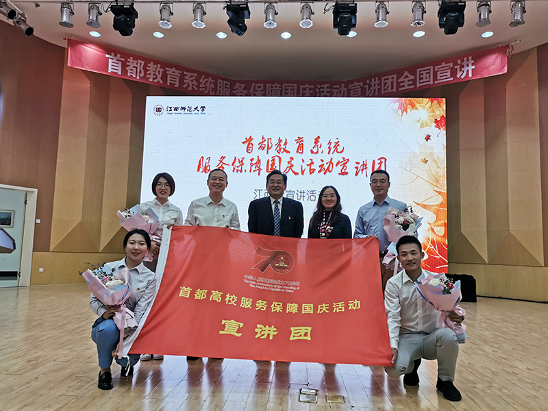 為貫徹落實(shí)中央關(guān)于國慶活動總結(jié)的指示精神,教育部會同北京市組建首都教育系統(tǒng)服務(wù)保障國慶活動宣講團(tuán)分赴全國三十個省市進(jìn)行宣講,旨在通過宣講以鮮活的事例、典型的人物為載體,對全國廣大高校師生開展一次生動的愛國主義黨課,一次活潑的思政教育課,激發(fā)大學(xué)生的愛國主義情懷,堅(jiān)定理想信念。按照統(tǒng)一安排,我校與北京林業(yè)大學(xué)一起組成宣講團(tuán)于10月31日至11月3日赴江西省宣講。