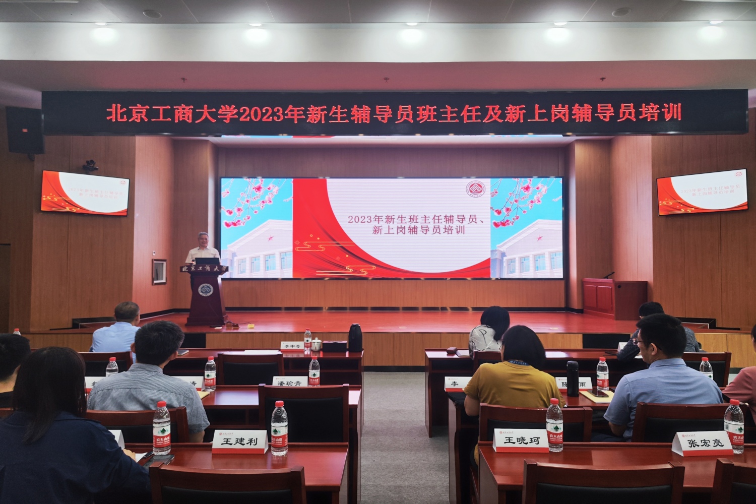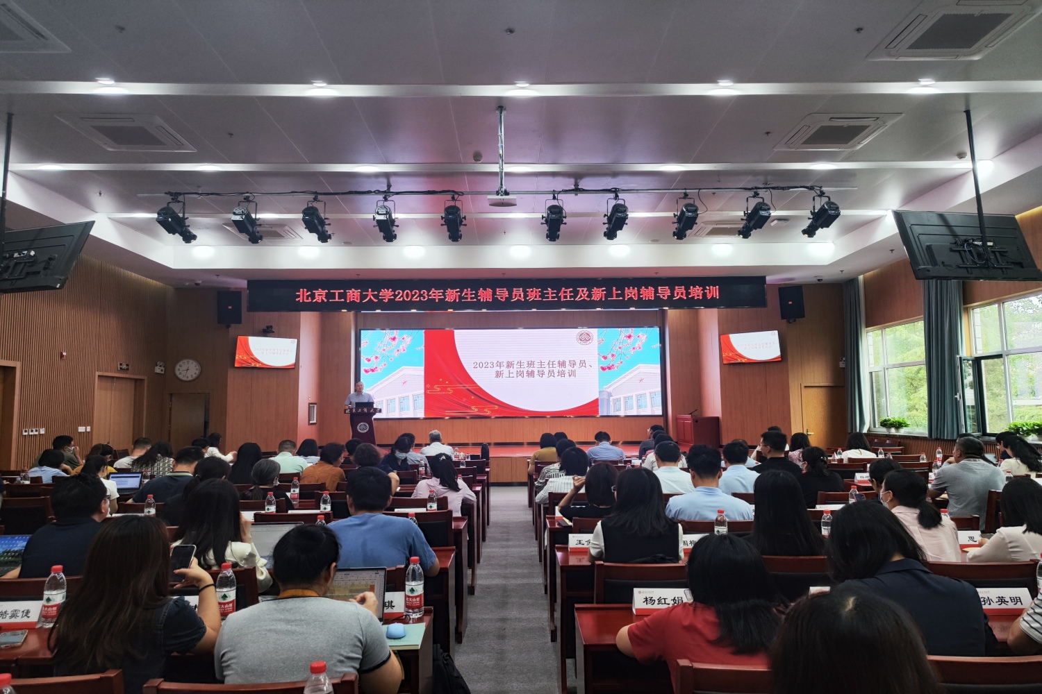 8月31日,學校2023年新生班主任輔導員培訓在阜成路校區舉辦。本次培訓內容涵蓋學工隊伍落實立德樹人的使命擔當、優秀班主任工作經驗分享、大學生心理健康教育、意識形態工作與輿情應對、階梯式思想政治教育及迎新工作安排等,來自各學院的130余名新生班主任、輔導員,以及2023年新上崗的輔導員參加培訓,會議由學生處處長呂良主持。