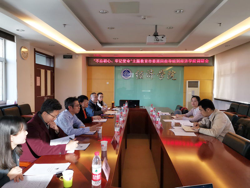 11月19日上午,市委第十二巡回指導組赴經濟學院調研“不忘初心、牢記使命”主題教育工作。巡回指導組成員于群、李艷秀出席調研。學院黨委書記呂素香、副書記杜亞輝、副院長張偉、寧威,金融系黨支部宣傳委員郭娜、學院本科生黨建輔導員單紫薇參加調研活動。會議由學院黨委書記呂素香主持。