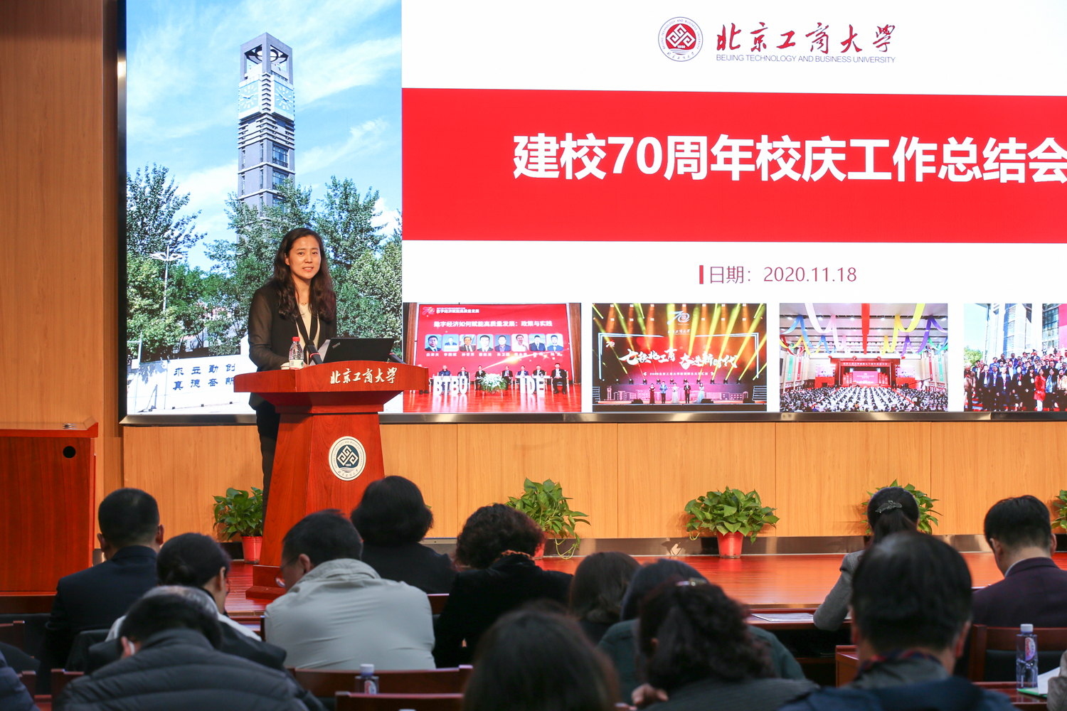 董竹娟副書記從學校黨委高度重視、積極推進校慶籌備工作,各專項工作小組各司其職、為校慶活動增光添彩,各學院高度重視、積極參與校慶籌備,校慶活動精彩紛呈、校慶精神永駐北工商,以及校慶工作中存在的不足等五個方面系統回顧了校慶各項籌備工作。她強調,希望全校師生員工以70周年校慶為契機,傳承紅色基因,挖掘校友資源,精誠團結,萬眾一心,艱苦奮斗,積極落實學校事業發展“十四五”規劃的各項目標任務,深化教育教學改革,凝心聚力,為建設高水平研究型大學不懈奮斗。