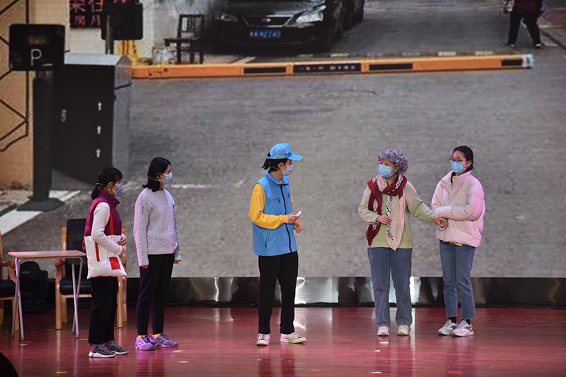 情景劇《暖心》真實還原了志愿者在疫情期間參與社區防控工作及“桶前值守”的故事。舞臺上的志愿者同學們用生動有趣的表演,分享在志愿服務過程中的感悟、收獲與成長,展現了疫情防控期間一線志愿工作的辛苦與不易,詮釋了志愿者甘于奉獻的初心與向往。