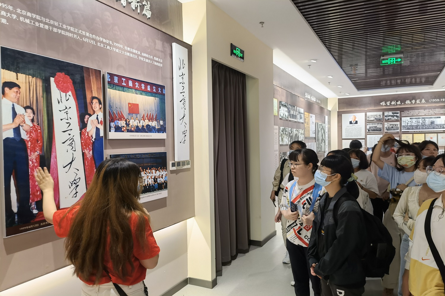 為開展愛校榮校教育,幫助新生了解我校悠久的校園文化歷史及精神。9月5日至8日,學生處聯合圖書館(校史館)組織2021級本科新生開展參觀校史館活動。在嚴格遵守疫情防控要求的前提下,來自全校14個學院的2600余名新生分28批步入校史館,共同回顧了北工商71年來的光輝發展歷程。