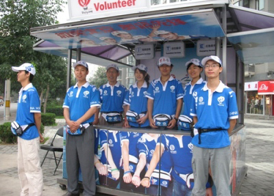 雖然今天陰雨綿綿,但并未影響志愿者們服務的熱情,每個崗亭的志愿者們都自備了北京市地圖或北京人手冊,有的還上網搜集了如何訂購奧運會期間門票等市民們容易問及的問題。大家熱情的向市民宣傳介紹城市志愿者的職責,耐心的解答路人的問題并提供幫助,在這陰雨天里,志愿者們用他們真誠的微笑和服務照亮了北京的街頭。