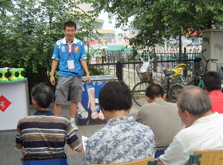 隨著奧運腳步的一天天臨近,來京旅游、看奧運的外地游客也逐漸增多。為了讓世界各地友人更多的觸摸北京,了解北京,志愿者們從各處搜集了大量老北京文化亮點,并專門整理后印制出來,發放給路人。同時還組織了“北京文化小講堂”,以講故事的形式介紹老北京旅游、飲食文化。盧溝橋的獅子、云居寺的“三絕”、簋街(鬼街)的小吃、還有老北京的爆肚兒、炒肝兒……小“講師”們講得繪聲繪色,妙趣橫生,吸引了很多路人停下來聽講。