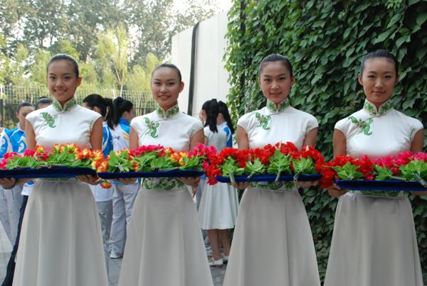 2008712,包括我校16名頒獎禮儀專業志愿者在內的共3372008北京奧運會頒獎儀式專業志愿者匯聚昌平職業學校,開始北京奧運會頒獎禮儀工作的沖刺培訓,。較之以往的在校期間自學課程,此次培訓除了頒獎禮儀動作、形體訓練等內容,還特別增加了奧運安保、拓展運動和藝術觀摩等課程。