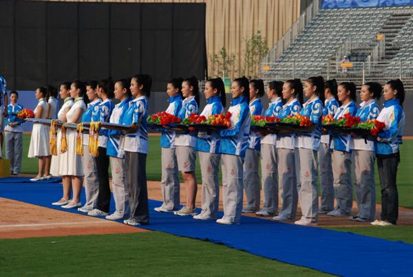 821晚上,2008北京奧運會壘球決賽順利結束。日本,美國和澳大利亞分獲冠亞季軍。在隨后的頒獎儀式上,我校16名奧運專業頒獎禮儀志愿者閃亮登場。這也是自她們于712開始集中培訓以來第一次正式登場。笑容燦爛,儀態萬方,端莊典雅,驚艷全場。為了這短短的二十分鐘的頒獎儀式,從七月份以來,她們付出了許多努力與汗水,只為了能向世人展示中國女孩的青春活力,溫婉可人。