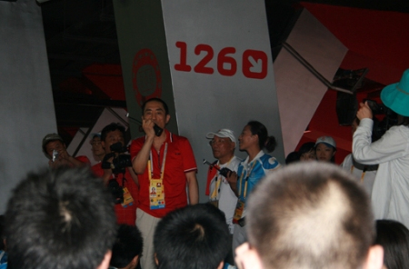 16點,奧運會開閉幕式總導演張藝謀、副總導演陳維亞來到互動指揮志愿者臨時“駐地”,為志愿者做決戰(zhàn)動員。張藝謀談到不能用對開幕式的期待來看待閉幕式,閉幕式核心內容就是告別,表達留戀之情,注意的并不是獨創(chuàng)性,更注重的是運動員、裁判員、官員們、志愿者、觀眾一起享受歡樂的奧林匹克時光,營造出普天同慶的效果。雖然節(jié)目精彩程度和開幕式不可相比,但是觀眾席上的熱烈氣氛是要保證的,這就給互動指揮工作帶來一定難度,任務艱巨。奧林匹克的圣火雖然熄滅了,但是在每一個人心中的火炬將繼續(xù)燃燒這一聲音需要你們帶領全體觀眾向全世界人民傳遞。特別要做好閉幕式中三個亮點的全場互動,也是閉幕式的核心內容。陳維亞導演更是結合夸張的肢體展示向全體互動指揮志愿者解釋了閉幕式三個亮點的重要工作。