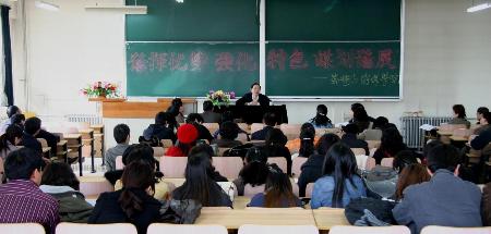譚向勇校長向教師們描述了學(xué)校近期各項(xiàng)工作的部署,分享了已取得的實(shí)際進(jìn)展,闡明了學(xué)校對教師的職業(yè)發(fā)展、生活狀況、工作條件等諸領(lǐng)域的關(guān)心和努力。他強(qiáng)調(diào)了學(xué)科、科研工作的重要性和緊迫性,要求學(xué)院的師資隊(duì)伍建設(shè)、專業(yè)建設(shè)都要密切結(jié)合學(xué)科建設(shè)、科研建設(shè),結(jié)合學(xué)校的學(xué)科、科研規(guī)劃做好學(xué)院的學(xué)科、科研發(fā)展目標(biāo),發(fā)揮原有優(yōu)勢,圍繞學(xué)校重點(diǎn)學(xué)科發(fā)展形成自身的優(yōu)勢學(xué)科,表示學(xué)校支持藝術(shù)與傳媒學(xué)院教師積極開展科學(xué)研究。他要求教師、教輔人員不斷提升科研能力和水平,高級職稱教師在學(xué)校的教學(xué)科研型大學(xué)建設(shè)過程中發(fā)揮應(yīng)有作用、承擔(dān)應(yīng)盡職責(zé),鼓勵藝術(shù)類教師積極從事、開拓多元多樣科研事業(yè)。