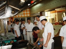 在生活區施工現場,盧思鋒詳細地詢問了施工的進展情況和安全措施,并作出指示在生活區南北主路的兩邊加裝照明設備。在學生公寓,他詳細地詢問了生活區技防設施的配備使用情況,查看了組團內的綠化效果,并要求在各組團大門上加裝小門。在食堂,檢查組查看了食堂的后廚,對食堂的用火用電、食品安全、食品衛生等方面進行了仔細地檢查,他詳細地詢問了食堂的工作時間、就餐情況,特別詢問了對清真餐廳的管理使用情況,他對食堂工作人員在假期加班工作給予慰問,并反復強調,食堂一定要注意消防安全,一定要注意食品安全和食品衛生,一定要在職工內部做好甲型H1N1流感的預防檢測工作。在過街天橋上,他要求后勤管理處在天橋上加裝照明設備;檢查組在圖書館著重對消防設施進行了檢查,在圖書閱覽室,他對加班的工作人員進行慰問并就學習情況、國慶訓練活動等詳細地詢問了自習的學生。檢查組還來到工三樓、工二樓、工一樓,對周邊的安全防范情況進行檢查,他強調要加強保安聯動機制,增設保安崗亭,確保校園安全。