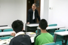 經過的第一間教室里在上英語課,老師講得投入,學生聽得認真。在另一間教室,見里面有四個學生在看書,孫堯東同志進去與他們交談。交談中得知,這四個男生是商學院09級的新生,因為課程安排在后兩節,他們先在這里自習。孫堯東同志詢問新生們對學校的感覺,以及課余時間如何安排。