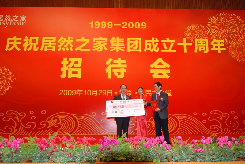 居然之家集團公司向我校捐贈100萬元勵學金儀式成為招待會的高潮,在全場嘉賓熱烈的掌聲中,集團董事長張學武先生將100萬元勵學金支票贈與學校黨委書記孫堯東。在向張學武董事長頒發捐贈證書和回贈“北京工商大學最佳教育貢獻獎”紀念獎牌后,黨委書記孫堯東發表了熱情洋溢的講話。