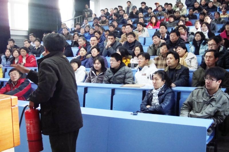 培訓(xùn)會上保衛(wèi)處處長頓勁松著重講解了日常工作中和實驗室的消防安全,并對滅火器的使用進行了講解。