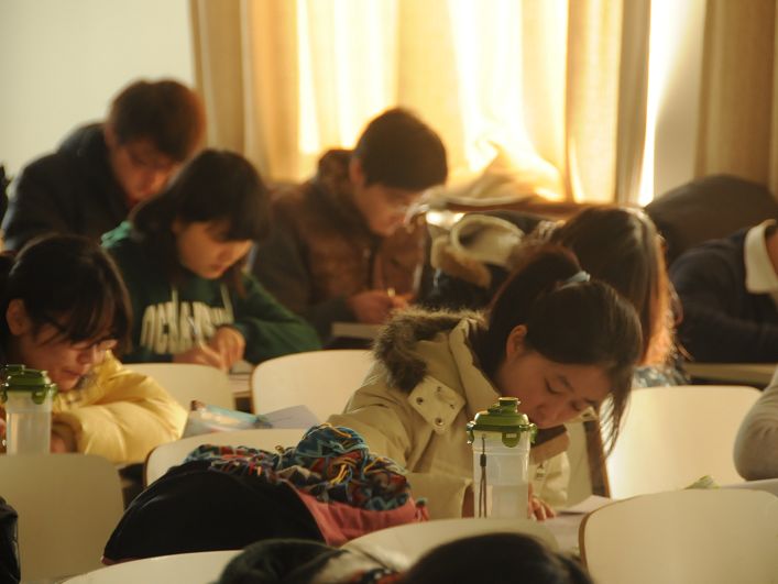 4日上午,當鐘樓的時鐘指向8:30分時,所有上課的老師都早已按時到崗。按照教學安排,本周是第18周,必修課老師為學生答疑,有的選修課進行隨堂考試。教務處領導和各辦公室工作人員在良鄉校區進行了巡查,看到學生們按時到達教室,基本上沒有遲到現象。老師們或答疑,或監考,態度認真,整個教學秩序井然。