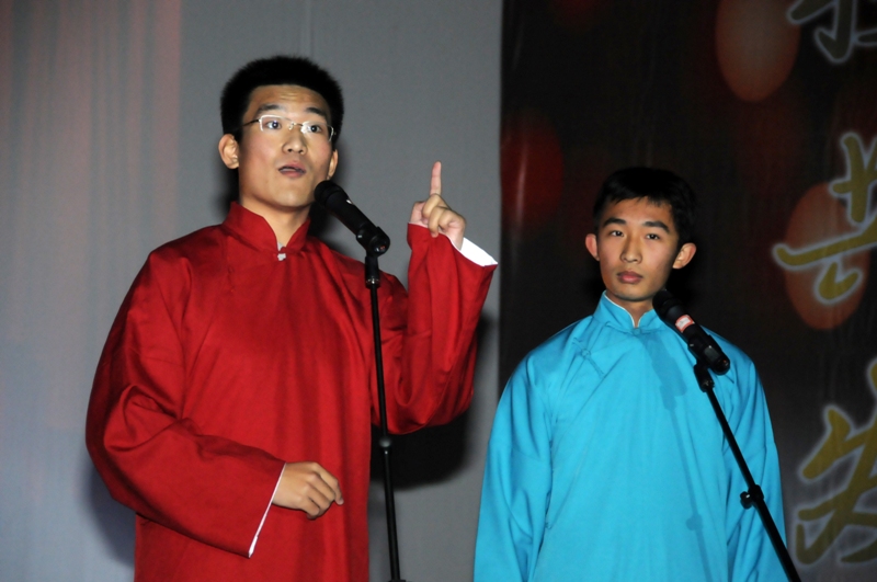 相聲《學電臺》的這句經典臺詞引得觀眾哄堂大笑。這個由同學原創,取自校園生活的 “民間”藝術作品頓時掀起場內一陣狂笑熱潮。只見來自計算機與信息工程學院的鄭慕軒、李鑫兩人你一言我一語,段子說的精彩,臺下聽得起勁兒。這不,連美國總統奧巴馬都為沒來咱們工商而深表遺憾了,雞柳卷大賽、牛懸醬香餅也都紛紛來湊熱鬧。笑聲、掌聲、歡呼聲,此起彼伏。