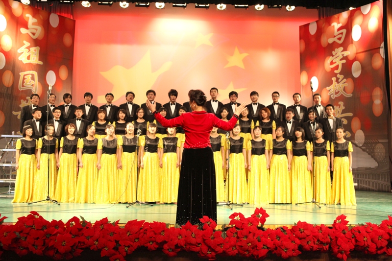 2009年10月1日,由我校師生為主要成員的群眾游行第五方陣——“艱苦創業”方陣在長安街上的表現堪稱完美。回首過往,天安門前的激昂依然在心中回蕩。舞臺上,曾經是游行方陣中一員的同學們用最真摯的感情,伴隨莊嚴的紅旗頌歌,誦出他們心中對祖國的崇敬。