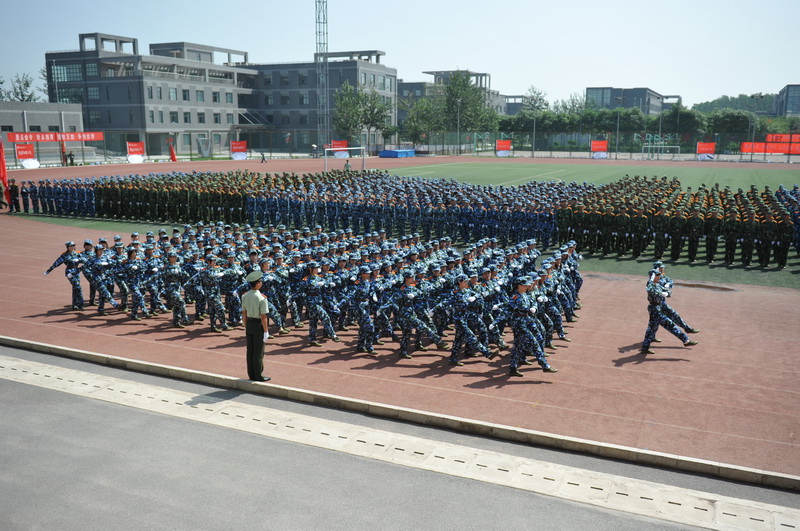 伴隨著雄渾有力的解放軍進(jìn)行曲,進(jìn)行了迎軍旗儀式。校長(zhǎng)譚向勇在軍訓(xùn)團(tuán)團(tuán)長(zhǎng)呂彥華中校的陪同下檢閱了受訓(xùn)學(xué)生。每當(dāng)譚校長(zhǎng)行進(jìn)到一個(gè)方隊(duì)前時(shí),受訓(xùn)學(xué)員便整齊地致以標(biāo)準(zhǔn)的軍禮,“首長(zhǎng)好!”“為人民服務(wù)!”的吶喊聲響徹云霄。